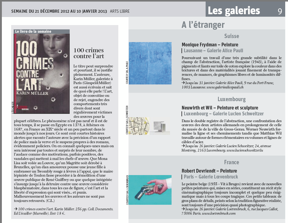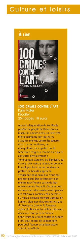 Article de Mireille Eyermann sur 100 crimes contre l’art
